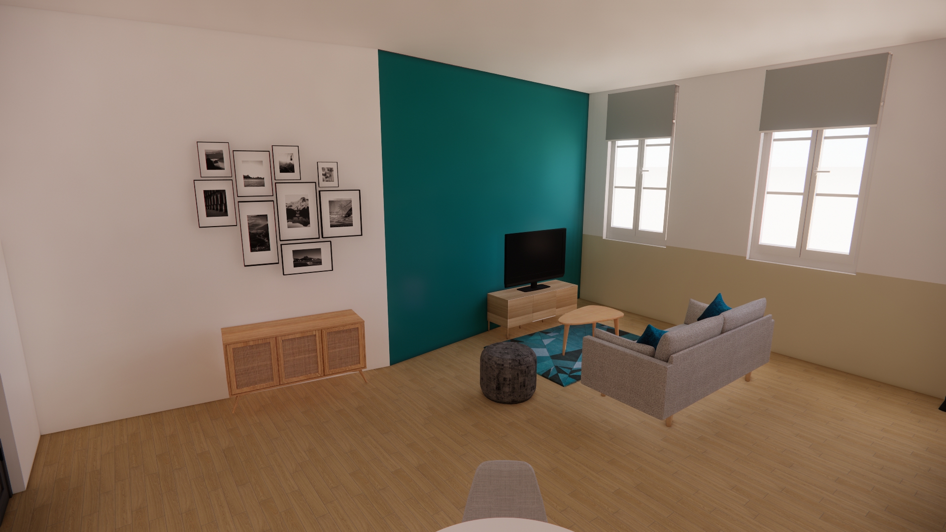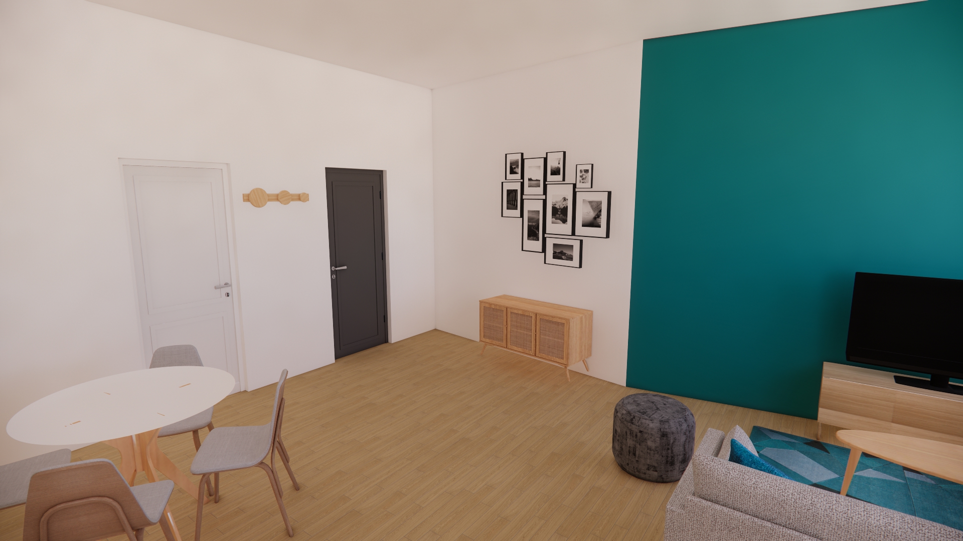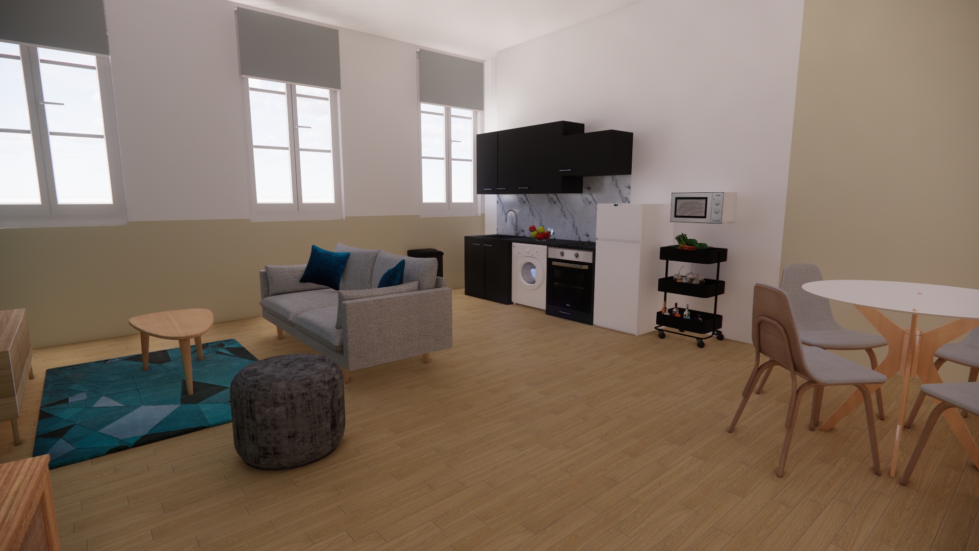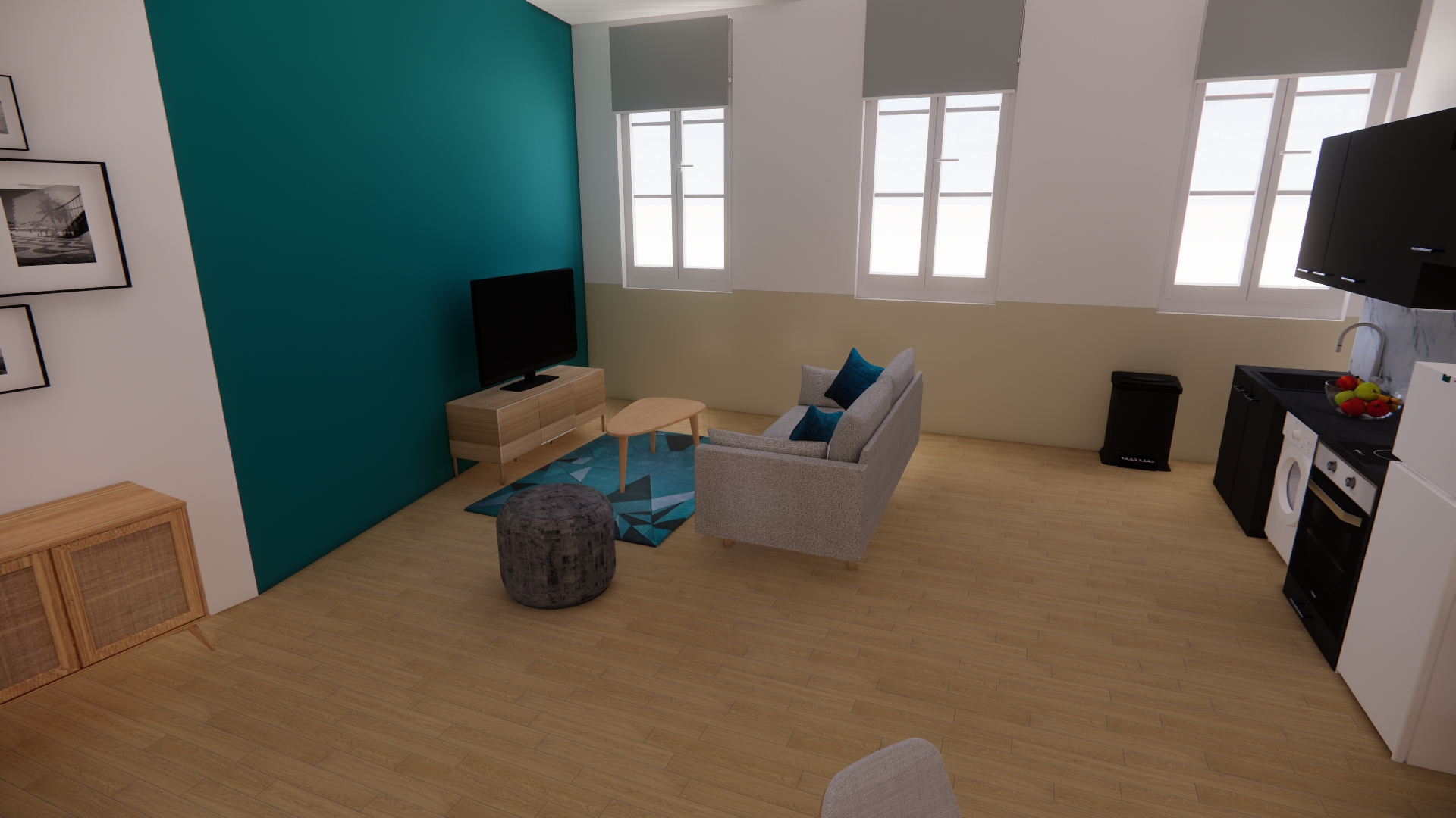 Rénovation et décoration d’un immeuble Il s’agit d’un immeuble destiné à la location d’appartements meublé à Alençon (61). Il est composé d’un local commercial au rez-de-chaussée, de deux T2 ainsi que deux studios. Cet immeuble a été entièrement rénové. Mon rôle dans le projet : Définir la mise en couleur pour donner du caractère et transformer le volume des pièces (choix des peintures)Optimiser les espaces des appartements et studiosChoisir le mobilier adapté à chaque appartement (location meublée) RÉALISATION DES 3D AVANT Un projet similaire ? rencontrons-nous !